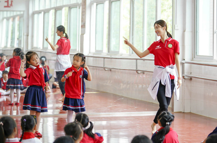 7月5日,一场关于艺术素养教育的梦想传递行动在四川省宜宾市长宁县城北小学开展,演员金晨参与此次活动并受邀担任梦想舞蹈老师当天。