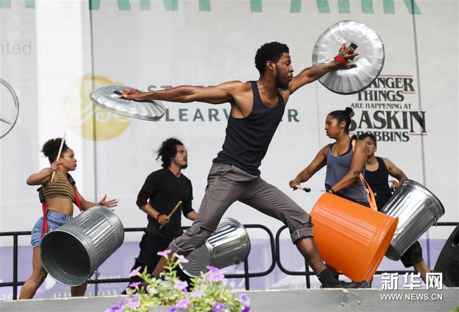 7月11日,在美国纽约,演员在“布赖恩特公园百老汇”活动中表演。新华社记者 王迎 摄