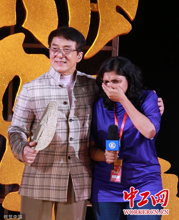 成龙“龙袍”加身热拥粉丝惹迷妹泪崩 《尖峰时刻》演员克里斯·塔克惊喜现身 (图片来源:视觉中国)