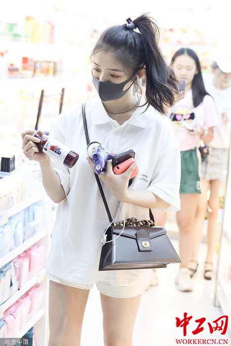 中工网讯 2019年8月12日,北京,林允现身机场。她在机场时不忘“备货”,在超市购买零食暴露吃货属性,穿白T扎高马尾似学生妹清纯可人。(本组图片来源视觉中国,版权作品,请勿转载。)