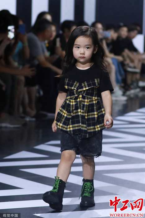 2019年8月13日,北京,2019中国国际儿童时装周期间,众多萌娃宝贝为某品牌走秀。董璇女儿小酒窝穿格子裙鬼马精灵,皮肤白皙细嫩,一双水灵灵的大眼睛完美继承妈妈的好颜值,领衔众萌娃走秀毫不怯场。邓莎儿子大麟子穿牛仔外套小小年纪超有范儿,黄觉女儿小枣穿白裙罩西装外套可爱又不失气场,男模张亮儿子天天也到现场观看,11岁的天天已经追随爸爸长成一双大长腿超吸睛,未来的长腿弟弟预订!