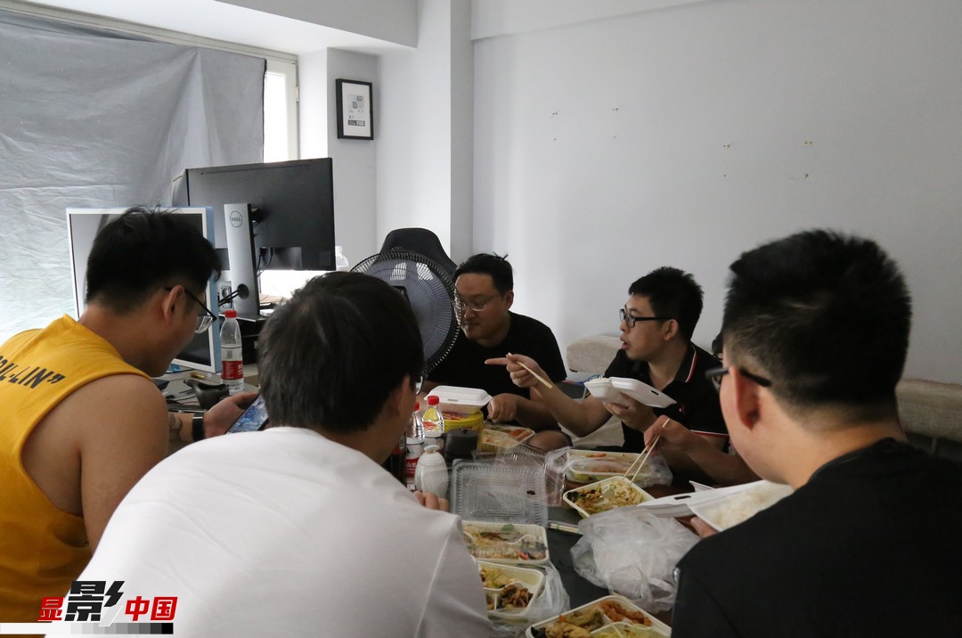 公司成立之初,只有王艺澄和董洋两人。“最难的就是没钱、没项目。”王艺澄说:“当时为了生存,什么活都接,我们俩没日没夜连轴转,有时候忙的连饭都吃不上,24小时不离公司是常态。”渐渐地,随着项目完成度高,王艺澄的公司在圈内有了些名气,也加入了志同道合的新人,目前团队稳定在8人。图为午饭时间,小伙子们边吃盒饭边讨论项目难点。新华网 刘舒摄