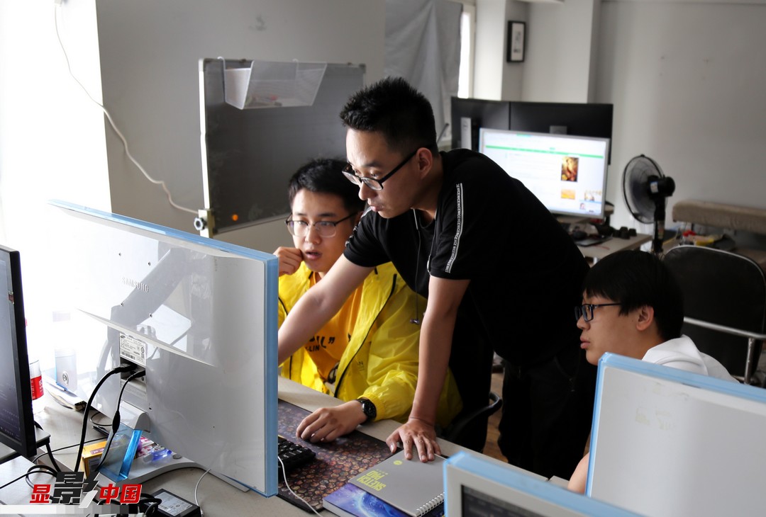 2018年夏天,公司接到了为《哪吒》制作特效镜头的工作。尽管当时团队已经参与制作了儿童动画、游戏、电影等50多个作品,其中有观众耳熟能详的《风语咒》《大闹西游》等影片。可做起《哪吒》来,依然让小伙子们产生了深深的“挫败感”。王艺澄说:“影片方要求很高,也很专业,每一个特效镜头都要反复修改,其中最多的一个镜头我们修改了15版。”图为员工们互相帮助,解决遇到的问题。新华网 刘舒摄