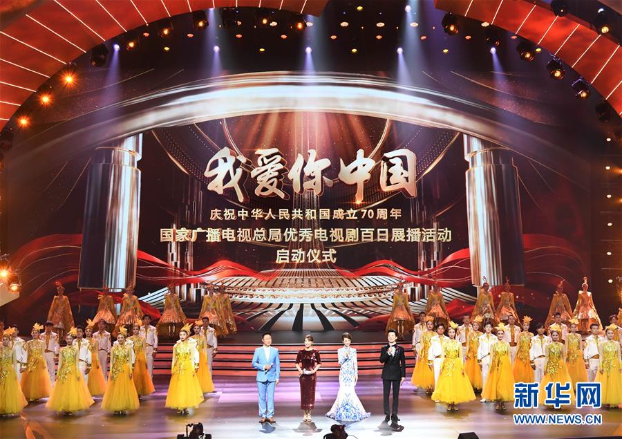 8月25日,主持人在启动仪式上介绍推荐剧目。当晚,为庆祝中华人民共和国成立70周年,国家广播电视总局“优秀电视剧百日展播”在青岛西海岸新区启动。