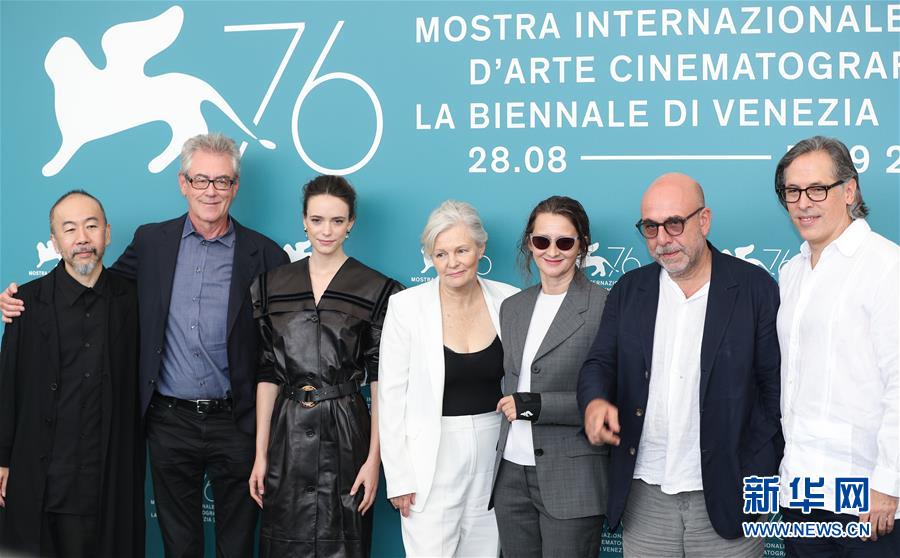 8月28日,在意大利威尼斯,第76届威尼斯电影节主竞赛单元的评委出席拍照式。第76届威尼斯电影节于8月28日至9月7日在意大利水城威尼斯举行。