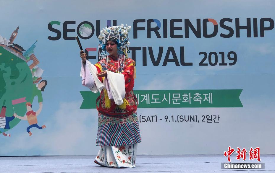 9月1日,韩国“2019首尔友谊节”举行演出、义卖等活动,北京市青年演出代表团应邀参加。图为北京市青年演出代表团在首尔演出。中新社发 钟欣 摄