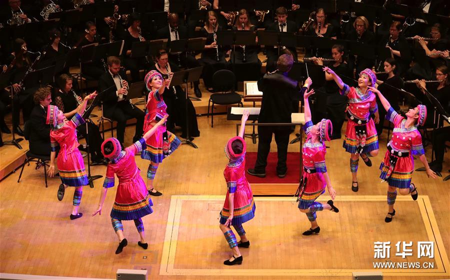 9月22日,在美国芝加哥,当地华人团体-东方舞蹈团在音乐会上跳舞。新华社记者 汪平 摄