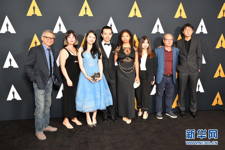10月17日晚,在美国洛杉矶,电影《大厨》剧组出席第46届“学生奥斯卡奖”颁奖典礼。中国留学生们自编自导的电影《大厨》夺得美国国内院校叙事片单元银奖。 美国电影艺术与科学学院17日晚在洛杉矶贝弗利山塞缪尔·戈尔德温剧院举行第46届“学生奥斯卡奖”颁奖典礼。中国留学生执导的两部影片夺得一个金奖和一个银奖。 新华社记者 高山 摄