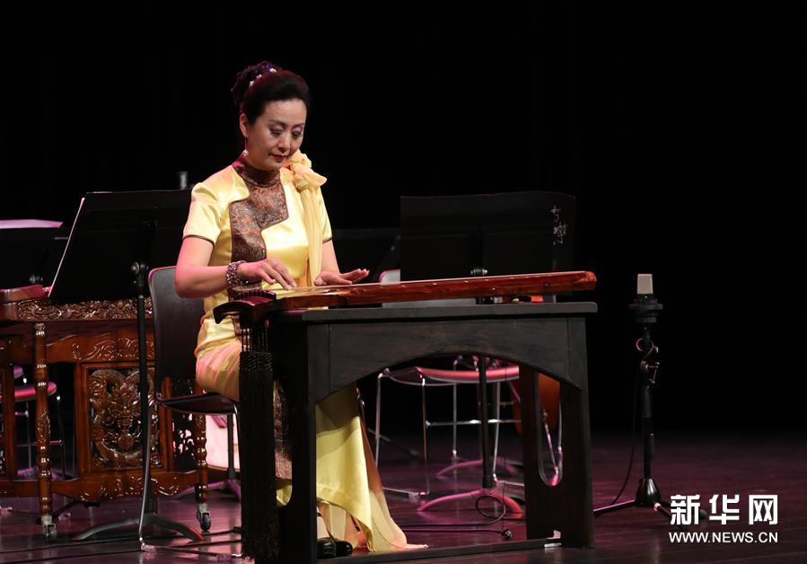10月22日,在比利时安特卫普,中央民族乐团演员演奏曲目《流水》。新华社记者 潘革平 摄