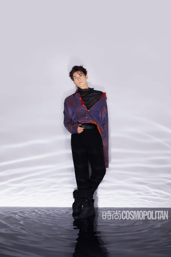近日,窦骁最新时尚大片曝光,黑色西装搭配同色系腰封,型男气质凸显。水影之间霸气外露,搭配微卷刘海碎发造型,时尚力max。