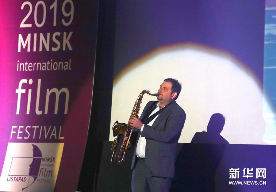 11月1日,在白俄罗斯首都明斯克,一名乐手在电影节开幕式上演奏萨克斯。新华社发(任科夫摄)