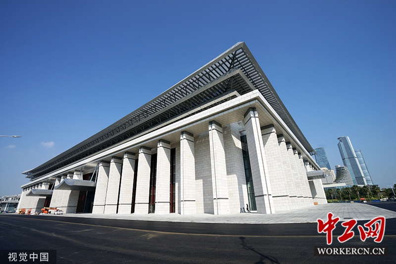 2019年11月12日,福建厦门。第28届中国金鸡百花电影节颁奖典礼主场馆外景。该项目是会展中心四期B8B9场馆项目,建筑面积约4.5万平方米。