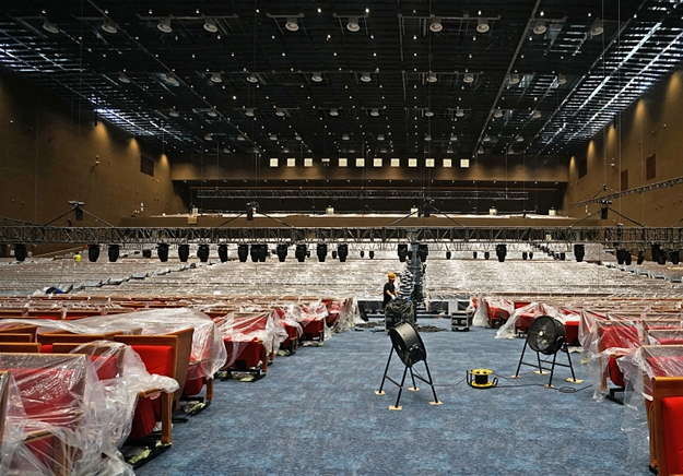 2019年11月12日,福建厦门。第28届中国金鸡百花电影节颁奖典礼主场馆外景。该项目是会展中心四期B8B9场馆项目,建筑面积约4.5万平方米。