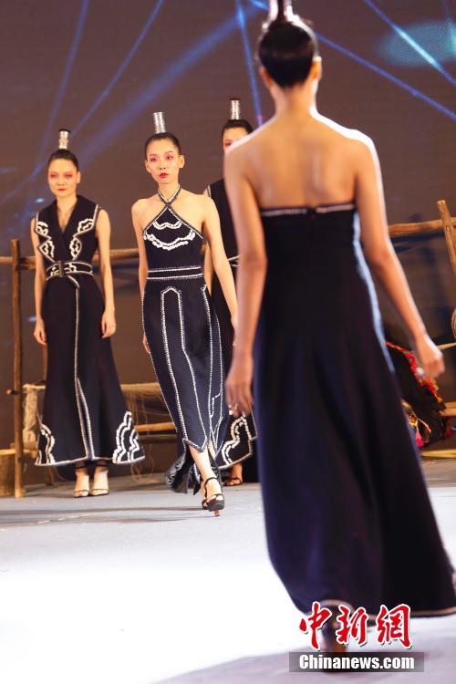 11月21日,第二届长三角国际文化产业博览会在上海国家会展中心开幕。图为“丝路云裳·七彩云南民族赛装文化节”主题秀亮相会场,吸引了参观者的目光。主题秀分为原生态服饰部分和现代创新性民族服饰部分,通过全新的民族与时尚巧妙搭配的新颖感,为观众呈现一场把民族元素与时尚趋势完美搭配的民族服装秀。中新社记者 殷立勤 摄