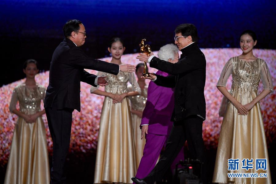 11月23日,电影《流浪地球》获得最佳故事片奖,成龙在为电影出品方代表颁奖。 当日,第32届中国电影金鸡奖颁奖典礼在福建厦门举行。 新华社记者 姜克红 摄