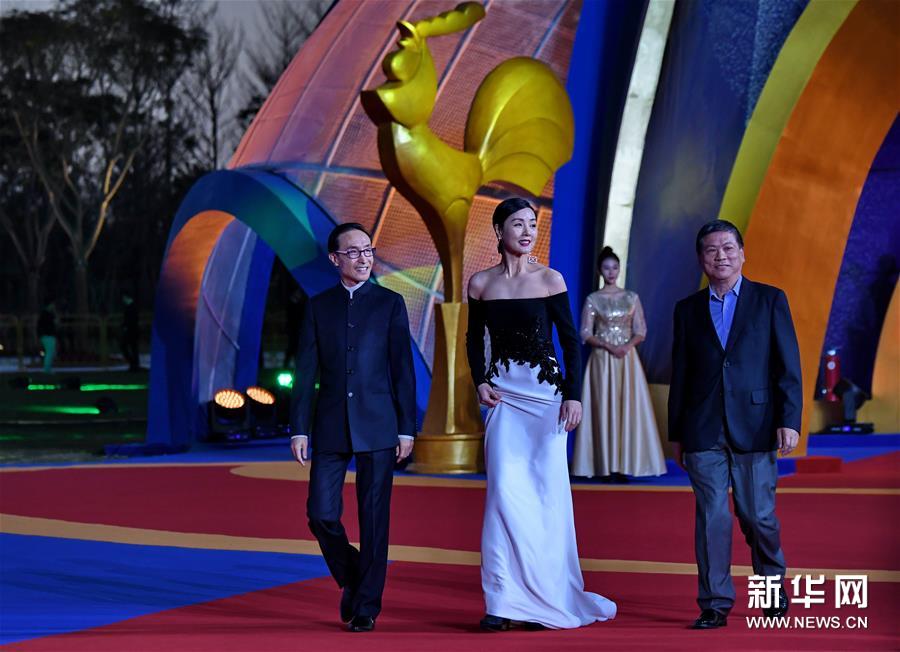 11月23日,巩汉林、姜宏波、黄小雷(从左至右)在红毯仪式上。新华社记者 张国俊 摄
