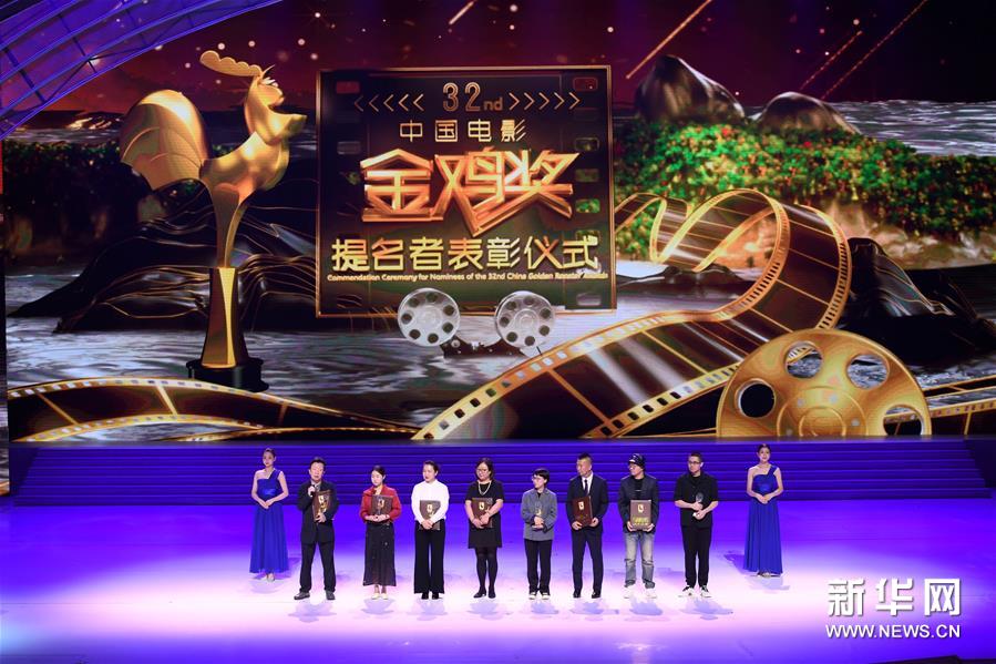 11月22日,在中国电影金鸡奖提名者表彰仪式上,获表彰的最佳编剧提名者及领奖嘉宾发表获奖感言。新华社记者 姜克红 摄
