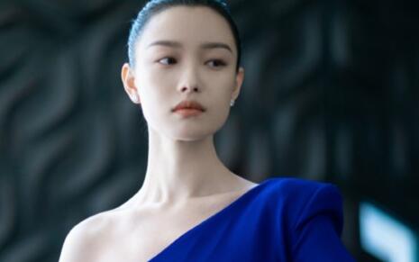 照片中,倪妮身穿宝蓝色斜肩礼裙,勾勒完美身材曲线,肩颈美背精致诱人,长发高高盘起显明艳大气。