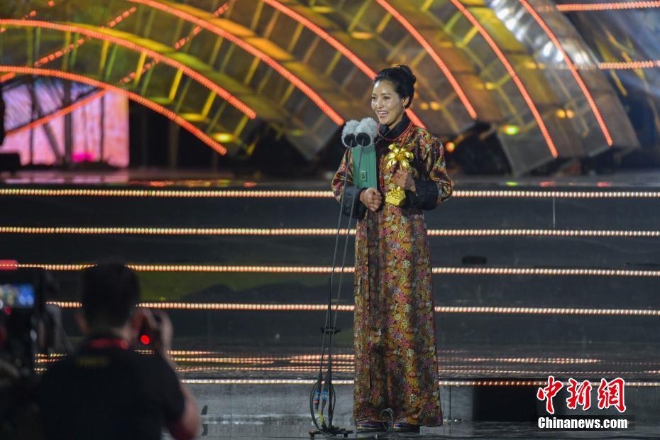 12月8日晚,第二届海南岛国际电影节在海南三亚落幕。首次增设的“金椰奖”奖项在当晚的闭幕式揭晓,《气球》、《大火将至》等中外影片榜上有名。图为中国电影《气球》中扮演卓嘎的藏族演员索朗旺姆获得最佳女演员奖。 中新社记者 骆云飞 摄