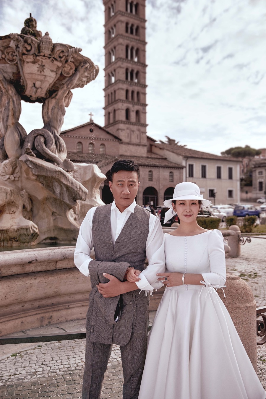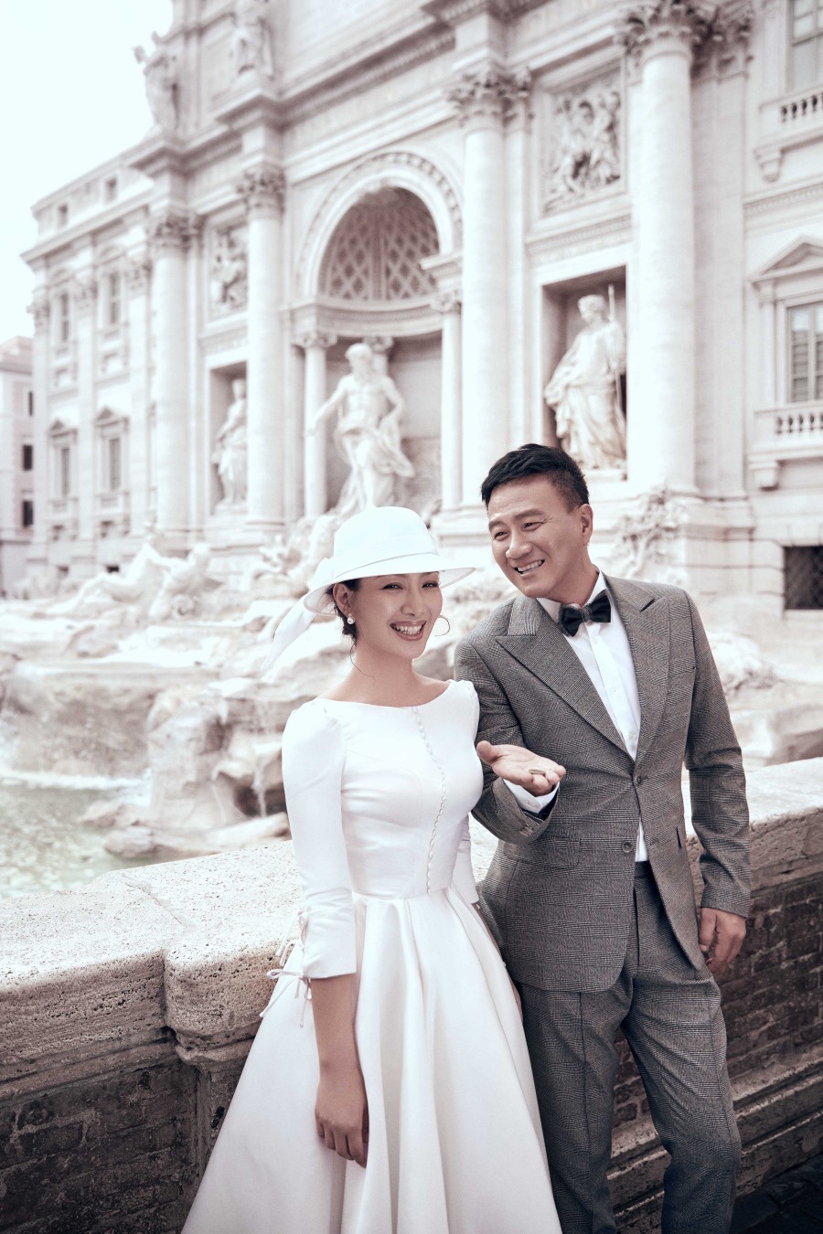近日,一组胡军与妻子卢芳合体拍摄的婚纱时尚大片曝光,照片中胡军夫妇二人再次来到二十年前求婚的罗马进行拍摄,在少女喷泉许愿池旁记录下彼此的幸福。