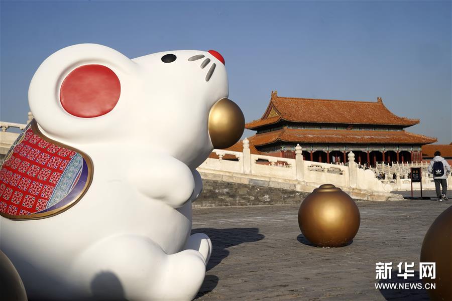 12月27日在北京故宫太和门广场拍摄的“吐宝鼠”。新华社记者 金良快 摄