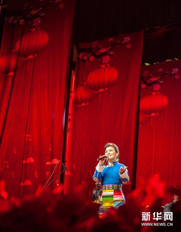 西藏自治区2020年新年音乐会上,歌唱演员次仁央宗在演唱歌曲《我们的西藏》(12月29日摄)。新华社记者 晋美多吉 摄