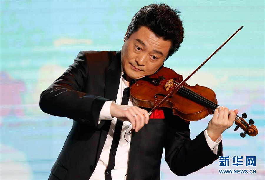 1月8日,吕思清在大联欢中演奏小提琴。 当日,“百花迎春——中国文学艺术界联合会2020春节大联欢”在北京人民大会堂举行。 新华社记者王丽莉摄