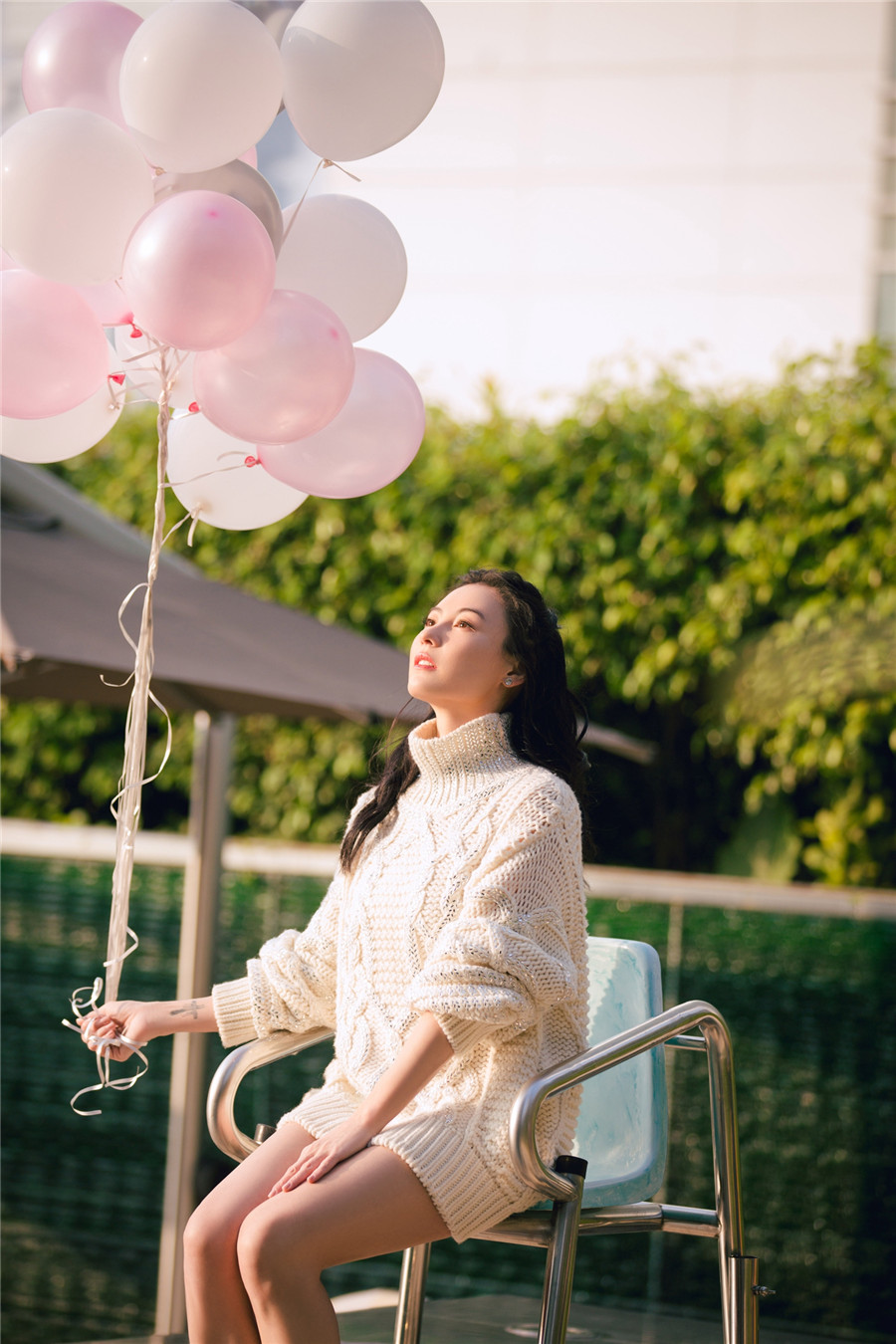 近日,张柏芝曝光一组最新写真。照片中,张柏芝身穿白色毛衣搭配波浪长发,温暖柔和,女人味十足。一双纤细长腿一展无遗,十分吸睛。温煦的阳光下,张柏芝手持大捧粉白色气球或静坐在水池边,或漫步在绿茵中,灿烂的笑容和清澈的眼神蕴藏着悸动,强烈的治愈感令人柔化其中,忍不住想与这可爱的元气少女来一次浪漫的邂逅。