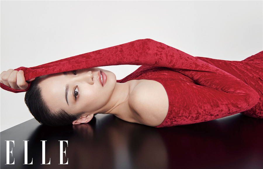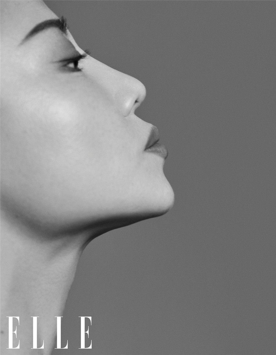 谭卓曝时尚大片 盘发造型大秀天鹅颈
