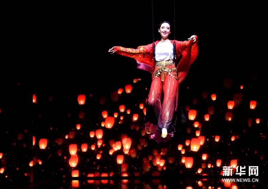 6月22日拍摄的《西安千古情》演出现场。 大型舞台剧《西安千古情》22日在西安浐灞世博园首演。该剧以一位华裔少女归国寻根为故事主线,浓缩展现了古城西安的悠久历史文化。 新华社记者 张博文 摄