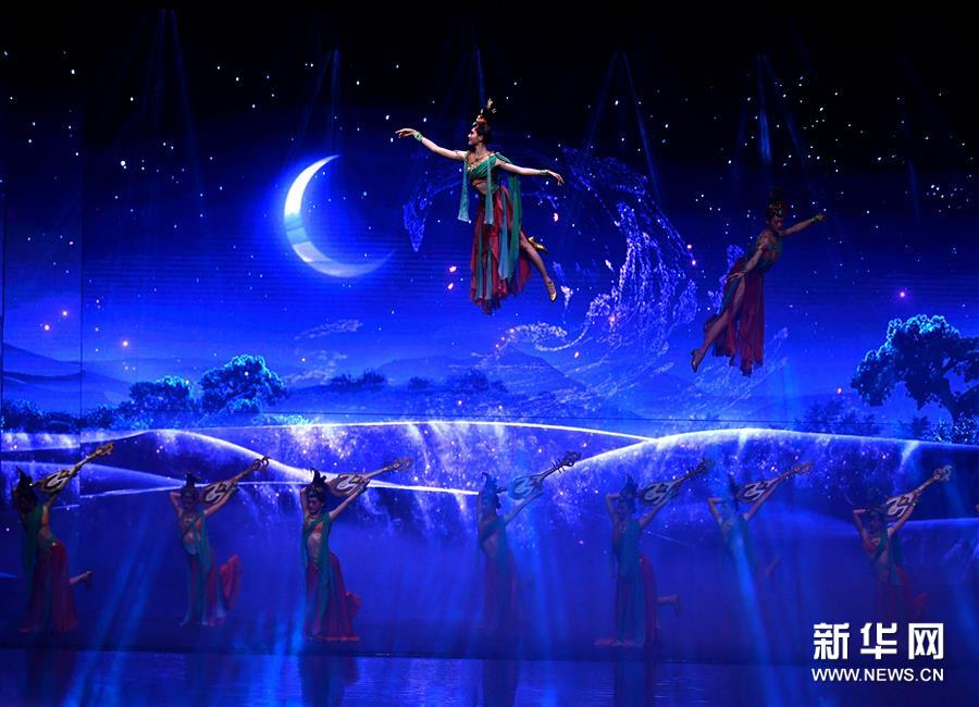6月22日拍摄的《西安千古情》演出现场。 大型舞台剧《西安千古情》22日在西安浐灞世博园首演。该剧以一位华裔少女归国寻根为故事主线,浓缩展现了古城西安的悠久历史文化。 新华社记者 张博文 摄