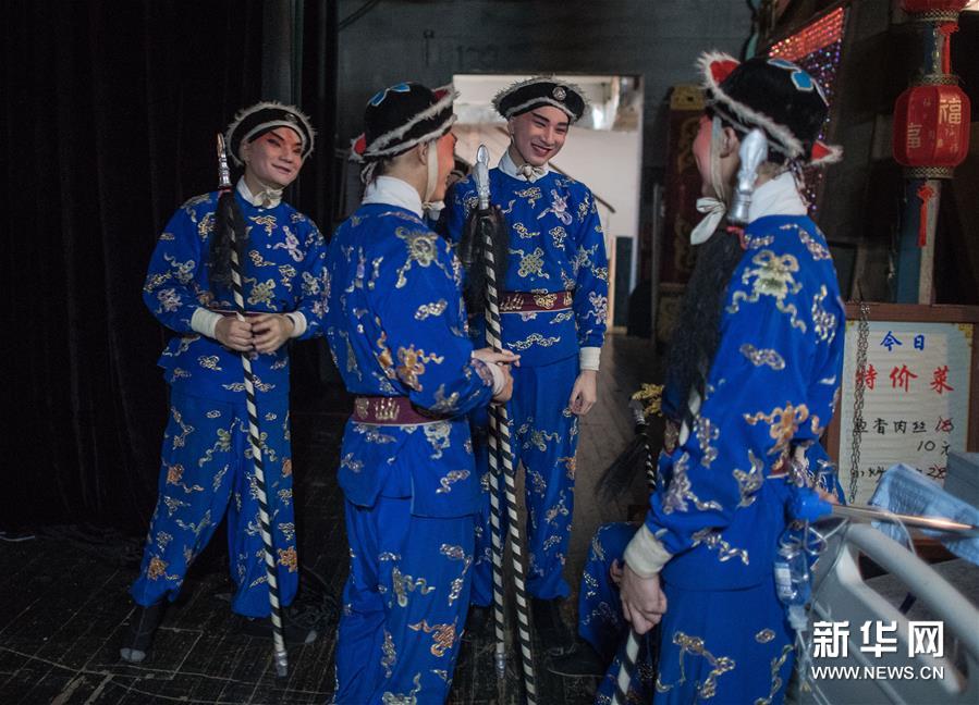 6月26日,在武汉市人民剧院,演员们在登台前准备。当日,武汉市中心7家剧场恢复开放,各大文艺院团恢复线下演出,市民再次坐在剧场内观看“戏码头”上群星云集、百戏荟萃。 新华社记者 肖艺九 摄