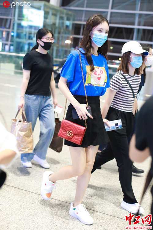 2020年7月8日,北京,金晨现身机场。金晨长腿吸睛,笑眼盈盈温柔可亲。(本组图片来源东方IC,版权作品,请勿转载。)