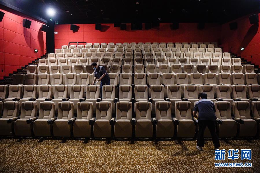 7月21日,明星时代影城北京梦秀店工作人员在放映厅内进行消杀清洁工作。 当日,记者在北京市新型冠状病毒肺炎疫情防控工作新闻发布会上获悉,北京市低风险地区电影院在各项防控措施有效落实到位的前提下,可于7月24日有序恢复开放营业。记者探访两家电影院,工作人员正在做复工前的消杀清洁工作。 新华社记者 彭子洋 摄