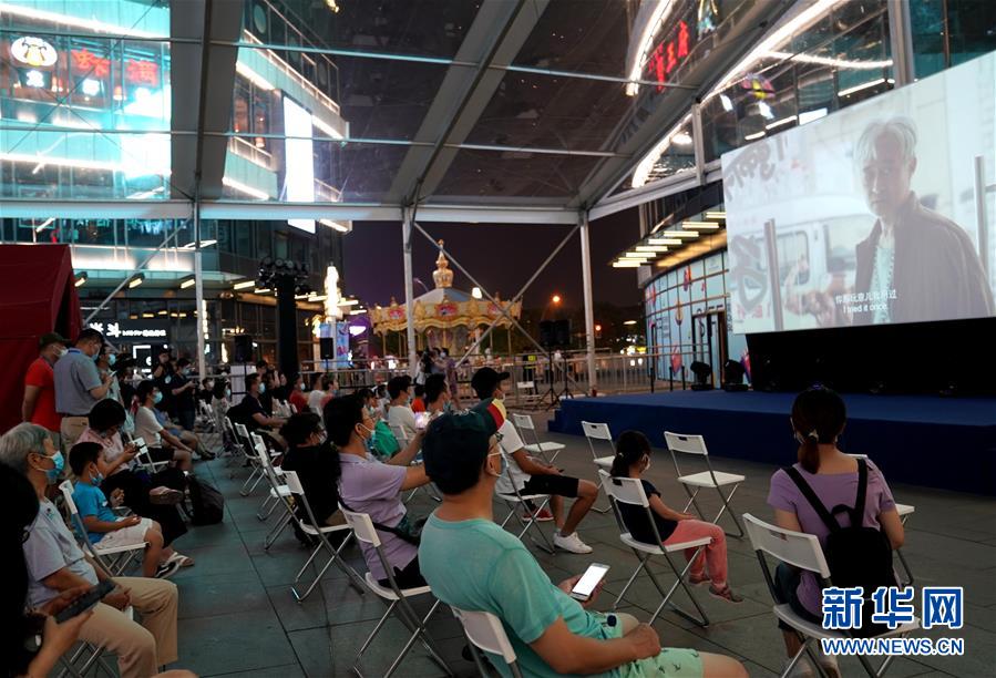 7月25日,观众在上海大宁音乐广场的露天电影展映现场观影。