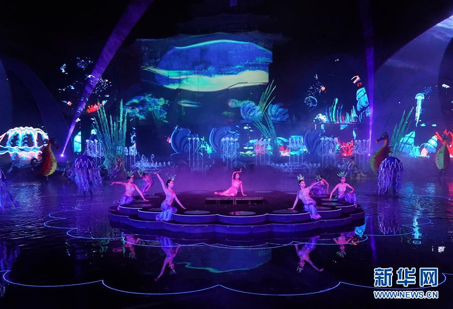 7月26日,演员在《浪淘沙·北戴河》彩排中。 近日,河北省秦皇岛市北戴河文化旅游新名片——大型实景秀《浪淘沙·北戴河》进行新一轮的排练,准备接待游客。 新华社记者 杨世尧 摄