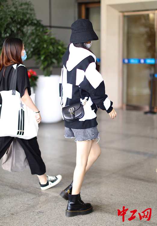 2020年8月4日,长沙,录完节目的赵丽颖现身长沙黄花机场,她戴着黑色渔夫帽,身着黑白卫衣和短款牛仔裤,大秀超细白皙美腿,见粉丝送机更大方挥手打招呼!签约供稿人/视觉中国