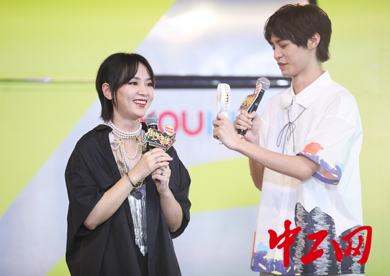 2020年8月8日,上海,优酷户外音综《街头音浪》发布会。周笔畅、屈柏宇。图片来源:视觉中国