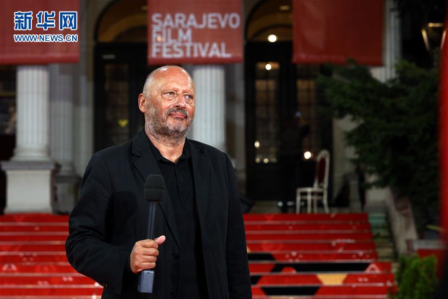 8月14日,在波黑萨拉热窝,萨拉热窝电影节创始人普里瓦特拉在电影节开幕式上致辞。 第26届萨拉热窝电影节14日晚开幕。受新冠疫情影响,本届电影节全程在线举行。 新华社发(内迪姆·格拉博维察摄)