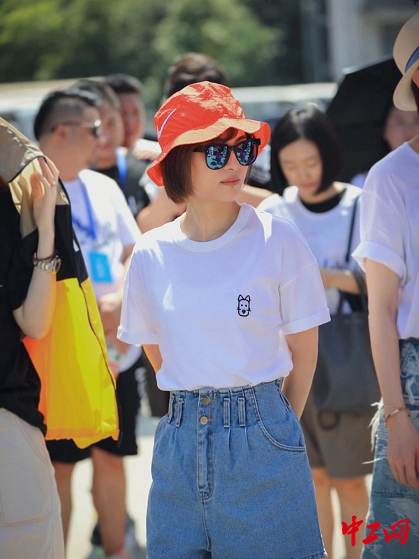 孙俪新剧开机穿T恤热裤造型青春可爱