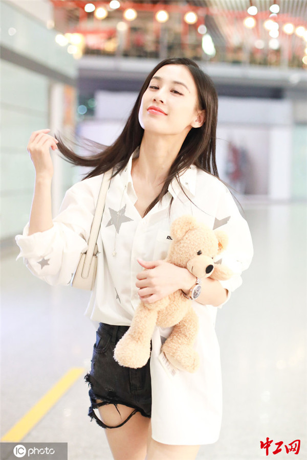 2020年8月29日,北京,黄圣依机场街拍。刘亚萍/IC photo