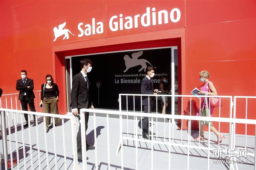 9月1日,人们佩戴口罩进出意大利威尼斯利多岛的第77届威尼斯电影节场馆。新华社/西霸