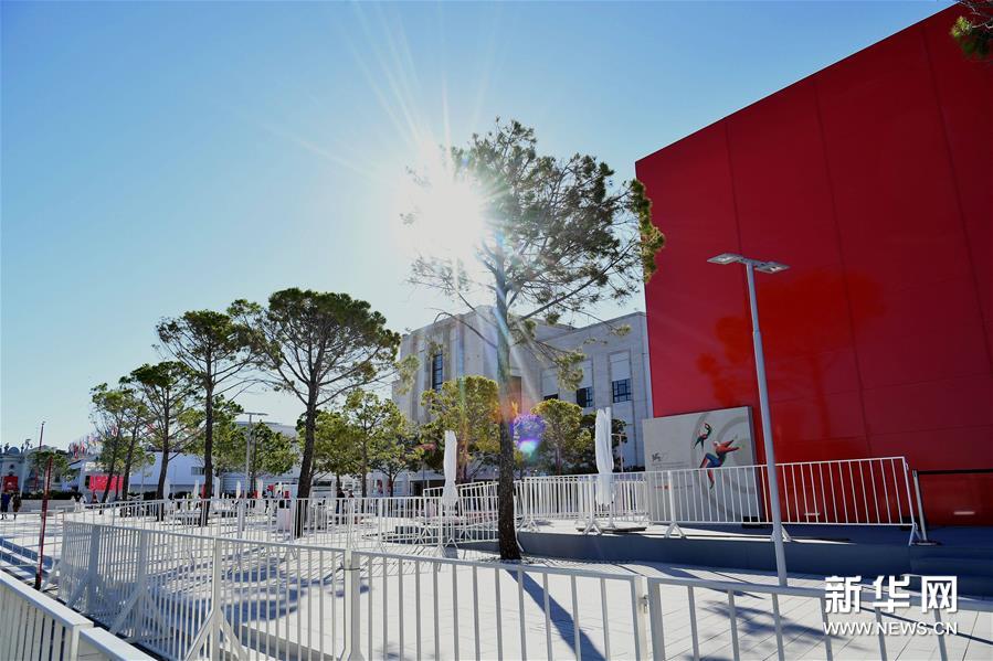这是9月1日在意大利威尼斯利多岛拍摄的帮助人们保持社交距离的设施。新华社/西霸
