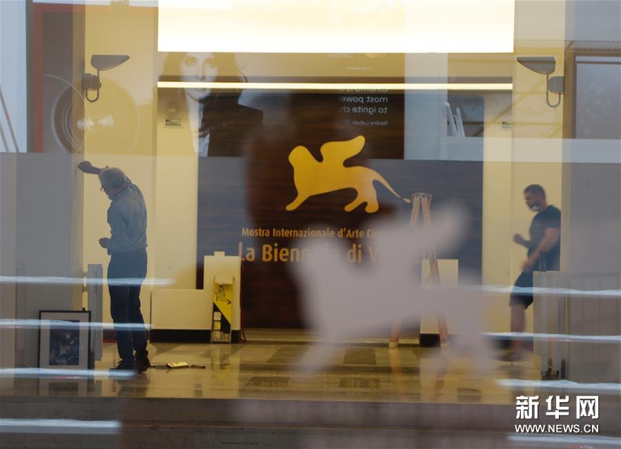 8月31日,工作人员在意大利威尼斯利多岛为第77届威尼斯电影节开幕做准备。新华社/美联