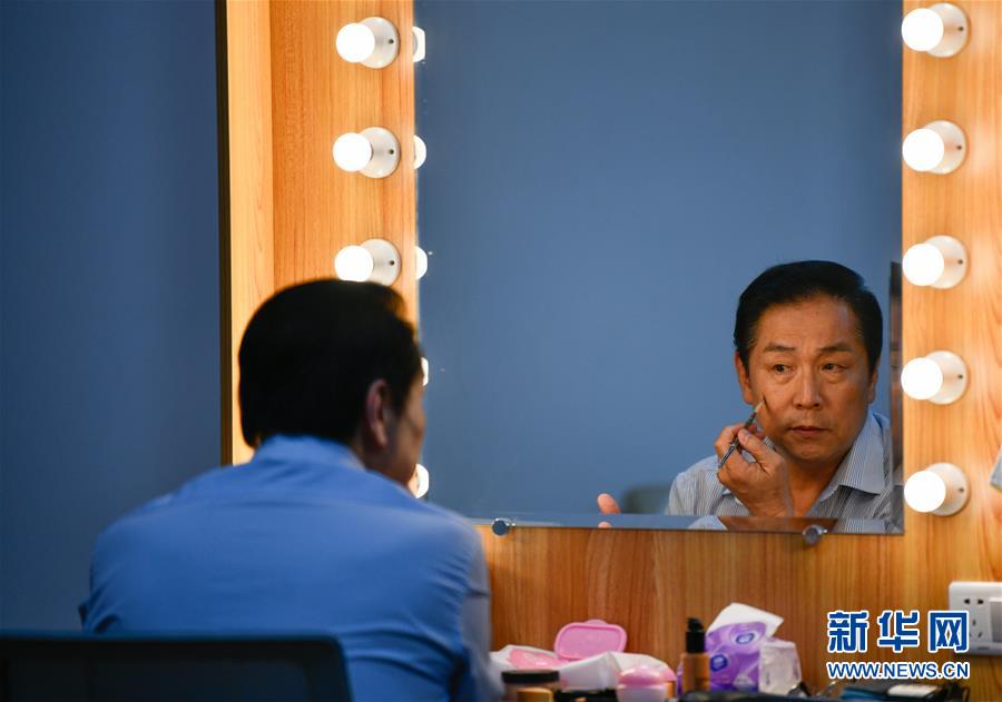 在天津市河西区光华剧院,王继世在化妆间里做准备(9月8日摄)。新华社发(孙凡越 摄)