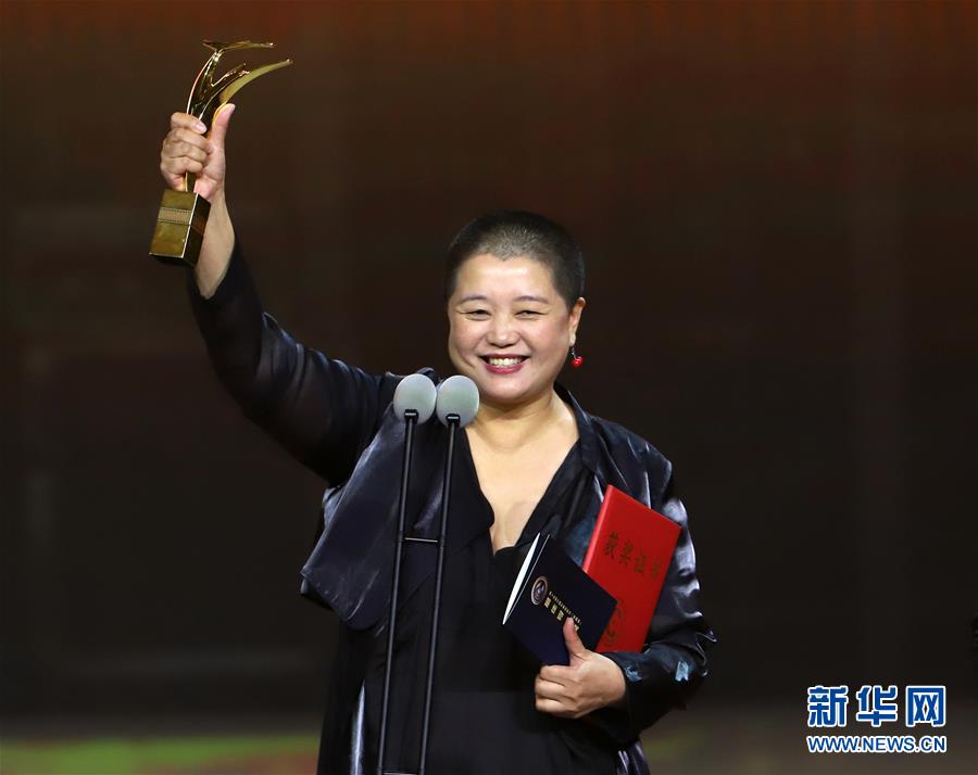 9月10日,凭借《春潮》获得最佳导演奖的杨荔钠出席颁奖典礼。 新华社记者 雒圆 摄