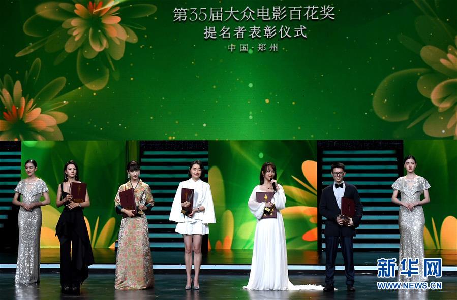 9月25日,获最佳女配角提名的演员和代表在表彰仪式上登台领奖。 当日,第35届大众电影百花奖提名者表彰仪式在河南郑州举行。仪式上,获得最佳影片、最佳男主角、最佳女主角、最佳导演等奖项提名的电影作品和电影人受到表彰。 新华社记者 李安 摄