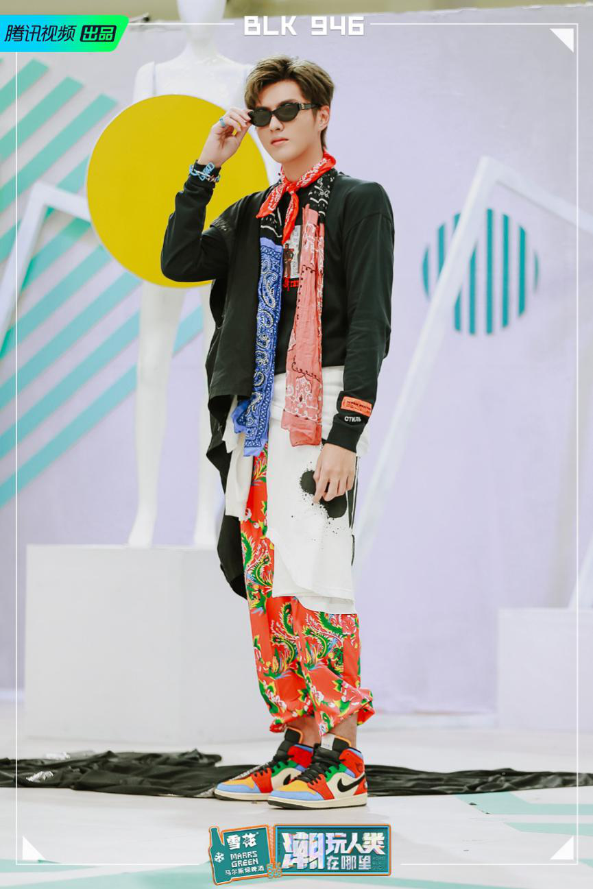 如何巧妙搭配“边缘潮品”、旧衣穿出潮味,既是终极厂牌战考核的重点,亦是节目的看点所在。面对“边缘潮品”东北大花裤,吴亦凡选择将东北花裤与球鞋进行颜色上的呼应,以黑白两色不对称穿搭削弱花裤的明艳感。扣环式手链对应不对称穿搭,Paisley拼接围巾成为整体造型的点睛之笔。吴亦凡的脑洞式穿搭不仅获得全场称赞,也被资深潮评团调侃“担心会引发一阵购买东北花裤的风潮”。而吴亦凡20限厂牌李璟豪的旧衣穿搭同样出彩,他选择以动物纹印花撞色契合流行风向,下身着军绿色复古工装裤,个性化的项链与饰品为造型增添趣味。个人穿搭后,便是难度升级的“一家人”穿搭挑战。整体造型上,吴亦凡、锋锋、林雅君三人通过不同材质的衬衫来凸显“一家人”主题。吴亦凡内搭豹纹衬衫外套黑色西装,卡其色机能裤与“特殊家庭成员”羊驼建立颜色上的服装关系。锋锋则以长短裤叠穿打造层次感,林雅君以格纹衬衫搭配男士飞行服,飒气十足。