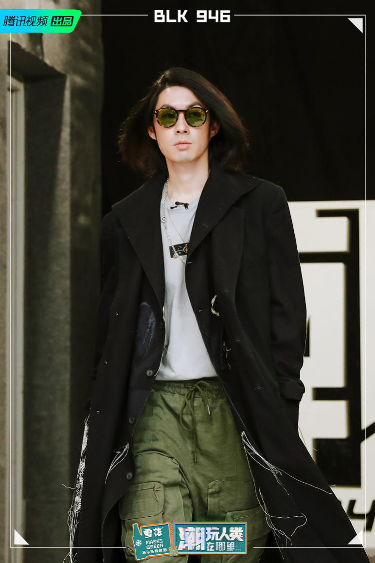 与吴亦凡的东北大花裤、吴建豪的金色亮片T相比,李灿森的“边缘潮品”粉色小猪沙滩裤则显得童趣满满。基于沙滩裤的休闲属性,李灿森上身以黑色内搭配以高科技感半透明机能外套,下身以legging打底配沙滩裤,脚蹬一双Raf Simons 设计师联名款球鞋。值得一提的是,李灿森造型中的透明茶色眼镜、黑白音符项链则是通过鲍鱼罐头交换而来。原来,李灿森在搭配过程中发现所带饰品不足,便拿着鲍鱼罐头与吴亦凡、吴建豪进行交换。有网友开玩笑说“原来有了鲍鱼罐头,就是变潮的诀窍啊”。无独有偶,李灿森厂牌顽童研究所杨面也是利用一切现有资源来进行穿搭。她在旧衣潮搭中以复古女郎造型亮相,亮黄色针织外衣内搭渔网上衣、迷你裙,而脚上的厚底鞋却是临时问队友所借。在“一家人”主题穿搭中,顽童研究所也将复古风进行到底。李灿森的画家帽配以复古镜框,枣红色西装上身,贵气十足。邓博思内搭渲染印花开襟衬衫,外套休闲式西装。饼干一身宽松垫肩西装气势爆棚,拼接线条衬衫让整体更具设计感。