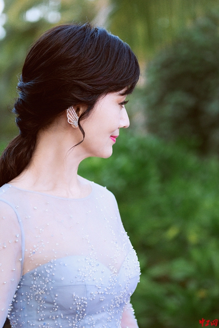 赵雅芝穿蓝色镶钻纱裙梦幻魅力